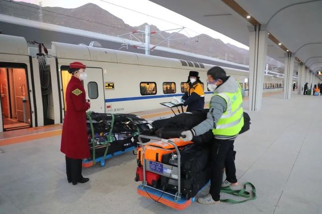 “目前雪具托運(yùn)辦理流程十分簡單,只需要幾分鐘。辦妥托運(yùn)的雪具會(huì)由我們車站的工作人員運(yùn)送到列車車廂里,一部分的座椅區(qū)用于存放雪具。遇到高峰時(shí)候,我們還會(huì)將整輛車廂劃為雪具存放車廂,來盡力滿足所有攜帶雪具旅客的需求?!蓖跣∮陆榻B道,“結(jié)合滑雪旅客的需求,我們還隨車配備了跌打損傷的藥膏,并為旅客提供暖身的姜茶等?!?/p>