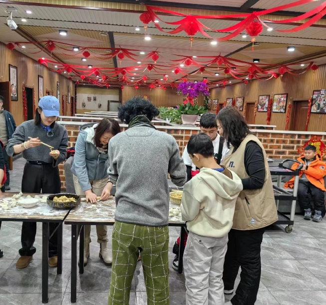 游客在吉林市永吉縣北大湖鎮(zhèn)南溝村過年包餃子。受訪者供圖