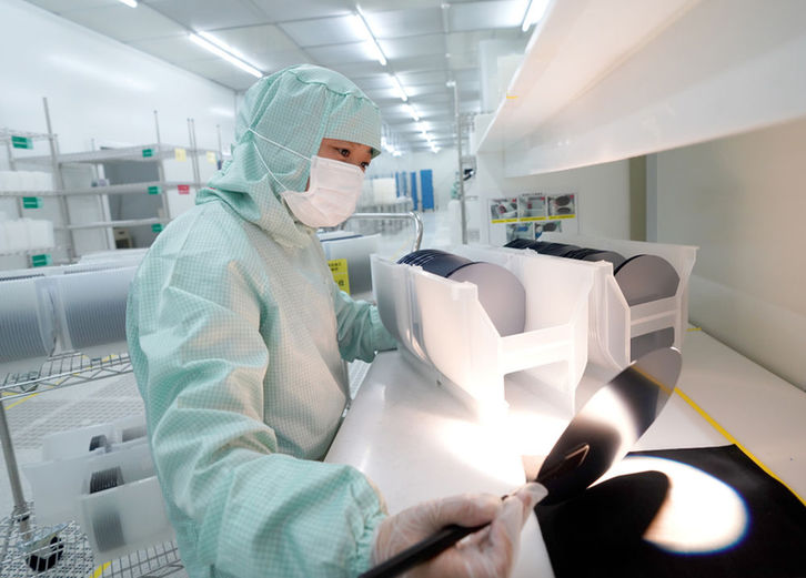 山東德州一家半導(dǎo)體材料企業(yè),員工在目檢硅片。記者 范長(zhǎng)國(guó) 攝