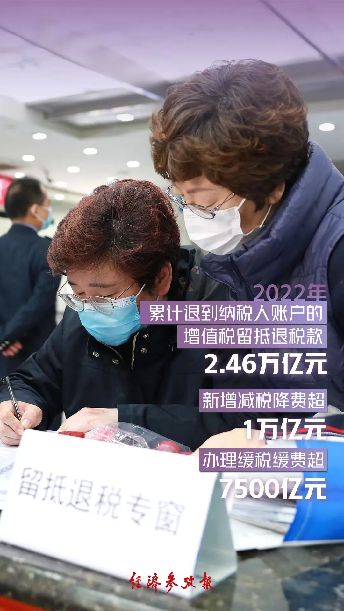 其中,累計退到納稅人賬戶的增值稅留抵退稅款2.46萬億元,超過2021年全年辦理留抵退稅規(guī)模的3.8倍;新增減稅降費超1萬億元;辦理緩稅緩費超7500億元。