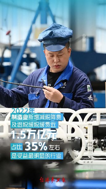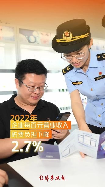 一是以“真金白銀”有效緩解了企業(yè)經(jīng)營壓力。稅務(wù)總局對10萬戶重點稅源企業(yè)調(diào)查顯示,2022年企業(yè)每百元營業(yè)收入稅費負(fù)擔(dān)下降2.7%,其中受疫情影響較大的交通運輸業(yè)、住宿餐飲業(yè)分別下降15.4%和14.2%,負(fù)擔(dān)顯著減輕。