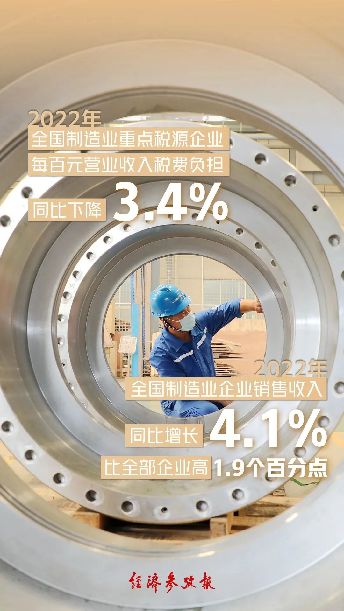 三是助力了制造業(yè)平穩(wěn)運行。在系列稅費支持政策作用下,2022年,全國制造業(yè)重點稅源企業(yè)每百元營業(yè)收入稅費負(fù)擔(dān)同比下降3.4%,幫助企業(yè)輕裝上陣。增值稅發(fā)票數(shù)據(jù)顯示,2022年,全國制造業(yè)企業(yè)銷售收入同比增長4.1%,比全部企業(yè)高1.9個百分點。特別是享受留抵退稅政策的制造業(yè)企業(yè)購進(jìn)金額同比增長8.2%,比沒有享受留抵退稅政策的制造業(yè)企業(yè)高4.5個百分點。