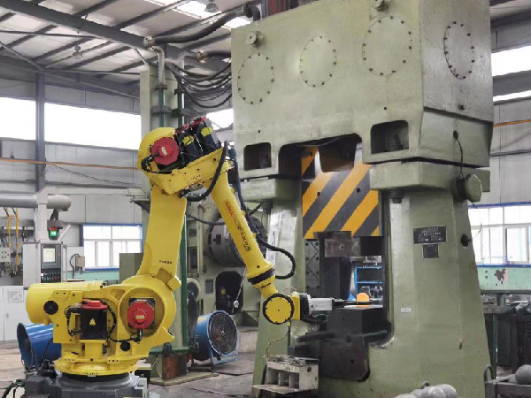 在鋼諾公司車間,一臺機器人站在裁切、沖壓兩個工序間,用鋼鉗轉(zhuǎn)移8公斤重的鋼段,連續(xù)10小時重復(fù)一個動作,每天可搬運40噸原料,其效率、安全性和精準度遠超人工。