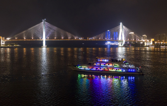 來自北京的游客楊夢蝶第一次乘坐游船欣賞??谝咕?。“看到了??诓灰粯拥囊幻?,在游船上體驗夜晚的濱海風(fēng)光感覺很特別,也非常休閑和放松?!彼f。