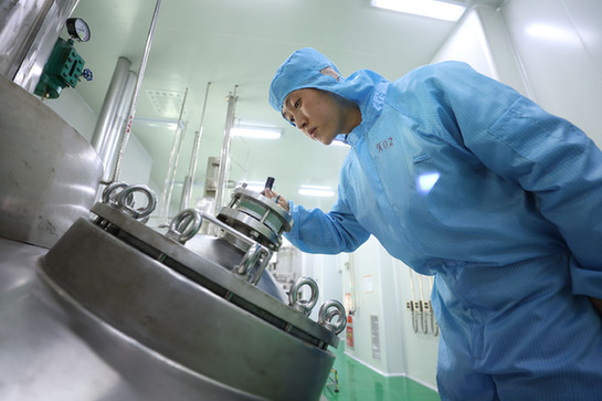 寧夏恒康科技有限公司員工正在對(duì)鹽酸二甲雙胍生產(chǎn)設(shè)備結(jié)晶釜進(jìn)行檢查。 新華社記者 呂澤 攝