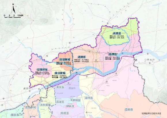 “北跨”主要是向北跨渭河發(fā)展拉大城市骨架,優(yōu)化西安城市空間布局。從區(qū)域來看,“北跨”戰(zhàn)略主要涉及高陵區(qū)、閻良區(qū)、臨潼區(qū)、西咸新區(qū)直管區(qū)(秦漢新城、涇河新城、空港新城)等渭河北岸各板塊,以及渭河南岸未央?yún)^(qū)、經(jīng)開區(qū)、灞橋區(qū)、國際港務(wù)區(qū)的部分區(qū)域。