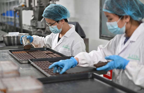 走進(jìn)位于??诮瓥|新區(qū)的加綠巧食品制造業(yè)(海南)有限責(zé)任公司車間,濃郁的巧克力香味撲鼻而來。每天,數(shù)十種巧克力持續(xù)從這里產(chǎn)出,進(jìn)入市場。