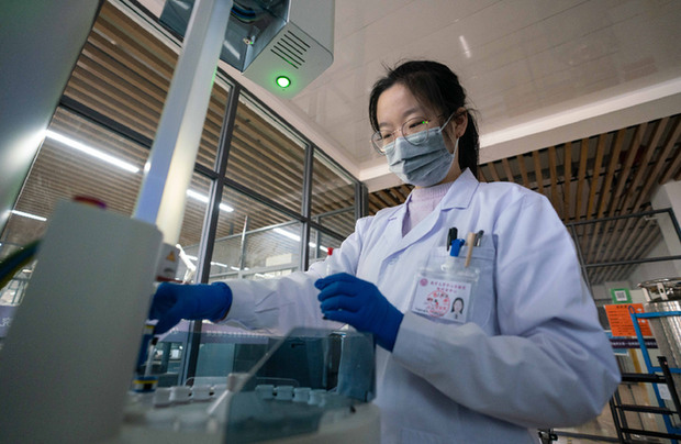 3月28日,南開大學—滄州渤海新區(qū)綠色化工研究院分析檢測中心工作人員在進行樣品檢測前準備工作。新華社記者 駱學峰 攝
