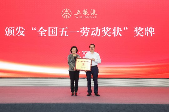 勞動(dòng)開(kāi)創(chuàng)未來(lái),奮斗成就夢(mèng)想。5月6日,中國(guó)財(cái)貿(mào)輕紡煙草工會(huì)在宜賓舉行授牌儀式,向五糧液集團(tuán)頒發(fā)“全國(guó)五一勞動(dòng)獎(jiǎng)狀”獎(jiǎng)牌。