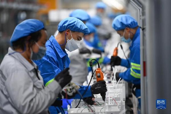 在位于浙江省臺(tái)州市的杰克科技股份有限公司, 工作人員在裝配車間裝配縫紉機(jī)(3月23日攝)。新華社記者 翁忻旸 攝
