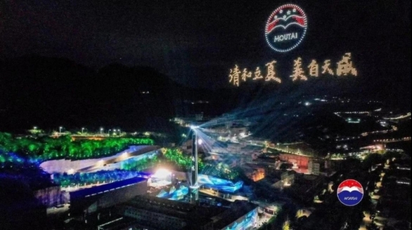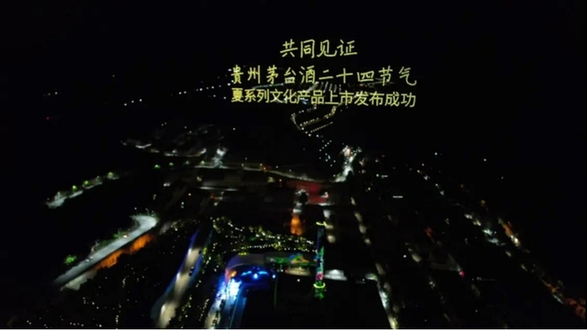 多架無人機(jī)以夜空為幕,在美輪美奐的燈光色彩配合下,小巽、茅臺酒瓶等造型和“共同見證貴州茅臺酒二十四節(jié)氣夏系列文化產(chǎn)品上市發(fā)布成功”等字樣依次呈現(xiàn),為與會人員獻(xiàn)上了一場精彩的視覺盛宴,更展示了茅臺品牌和文化的極致魅力。