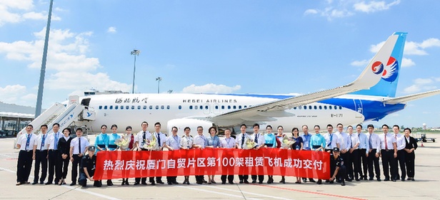 圖為2018年9月14日,廈門自貿(mào)片區(qū)第100架租賃飛機(jī)成功交付。資料照片