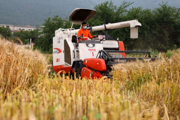 近日,貴州省遵義市正安縣安場(chǎng)鎮(zhèn)迎來小麥?zhǔn)斋@季,農(nóng)民搶抓農(nóng)時(shí)收獲小麥,田間地頭一派繁忙。