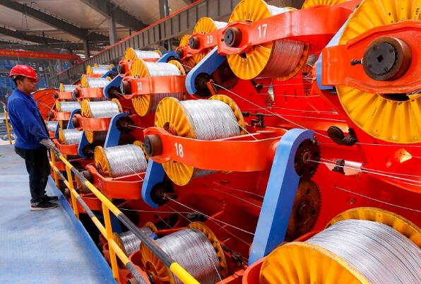 5月15日,在青島漢纜股份有限公司海纜生產(chǎn)基地,工人在生產(chǎn)用于海上風(fēng)力發(fā)電及石油平臺(tái)等大型海洋工程建設(shè)設(shè)施的海纜產(chǎn)品。