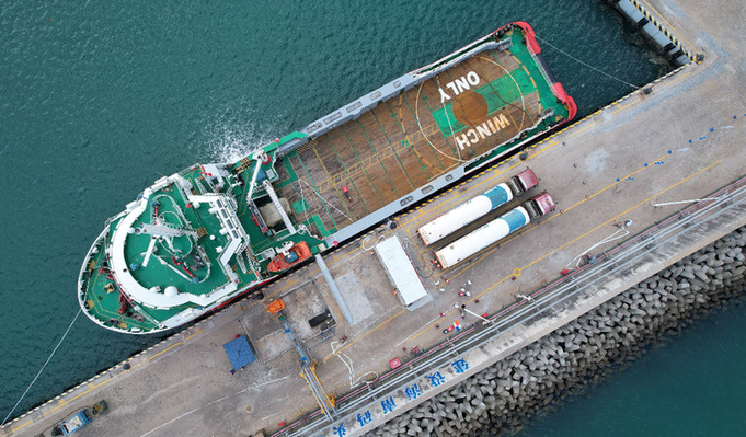 由中國海油氣電集團(tuán)建設(shè)運營的我國首座沿海液化天然氣(LNG)船舶加注站。新華社記者 楊冠宇 攝