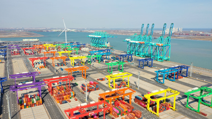 這是天津港全物聯(lián)網(wǎng)集裝箱碼頭。資料照片