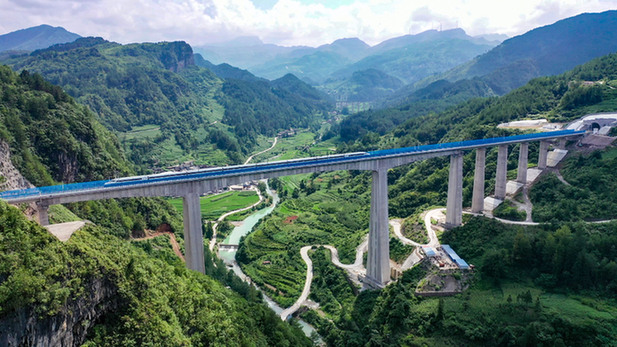 6月26日,試驗(yàn)列車(chē)經(jīng)過(guò)貴州貴定縣境內(nèi)的桐子園雙線特大橋。當(dāng)日,隨著55311次試驗(yàn)列車(chē)從貴陽(yáng)北站駛出,標(biāo)志著貴南高鐵貴州段聯(lián)調(diào)聯(lián)試結(jié)束,正式進(jìn)入運(yùn)行試驗(yàn)階段。貴南高鐵是我國(guó)“八縱八橫”鐵路網(wǎng)包頭到海南鐵路通道的重要組成部分,也是黔桂地區(qū)首條設(shè)計(jì)時(shí)速350公里的高速鐵路。
