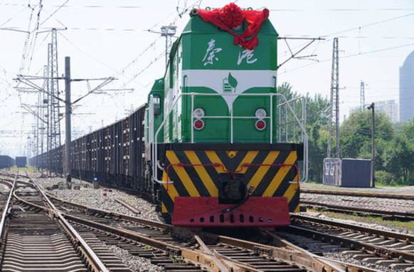 近日,由河北港口集團(tuán)秦皇島港股份有限公司與中國中車集團(tuán)聯(lián)合、利用退役內(nèi)燃機(jī)車再造的秦皇島港新能源1號(hào)機(jī)車在港區(qū)上線運(yùn)行。圖為秦皇島港新能源1號(hào)機(jī)車在調(diào)運(yùn)貨物。