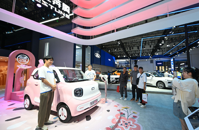 7月17日,觀眾在長春汽博會一汽奔騰品牌汽車展區(qū)拍照。正在長春國際會展中心舉行的第20屆長春國際汽車博覽會上,眾多自主品牌汽車亮相,吸引不少參觀者。