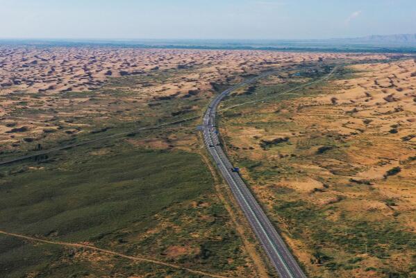 夏日時節(jié),內蒙古自治區(qū)杭錦旗境內的穿沙公路綠意盎然,綠色沿著道路前行,并向兩旁的沙地鋪展,猶如一條條“綠色動脈”在庫布其沙漠中綿延。穿沙公路不僅給昔日被沙漠阻隔而出行無路的農牧民帶來便利,也為實施國家防沙治沙重點工程、企業(yè)產業(yè)化投資治理庫布其沙漠打下了堅實的基礎。