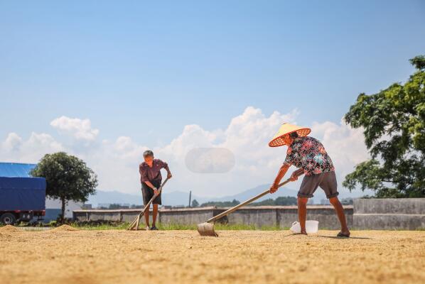 夏收時(shí)節(jié),湖南省永州市藍(lán)山縣早稻喜獲豐收,農(nóng)民趁著晴好天氣忙著收割、晾曬,一派豐收景象。新華社發(fā)(彭華 攝)