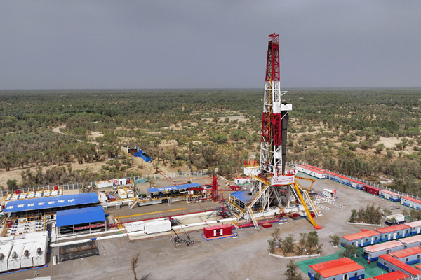 位于新疆塔里木盆地塔克拉瑪干沙漠的中國石化“深地工程”——順北油氣田平均埋藏深度超過7300米,是世界陸上最深的商業(yè)開發(fā)油氣田之一。順北油氣田目前已鉆成垂直深度超過8000米的井50口,實現(xiàn)了26口“千噸井”(單井日產(chǎn)1000噸的油氣井)的重大突破。圖為8月21日拍攝的中國石化塔里木盆地“深地工程”躍進3-3XC油氣井。該井設(shè)計井深9472米,截至8月28日,鉆探深度已達8471米(無人機照片)。