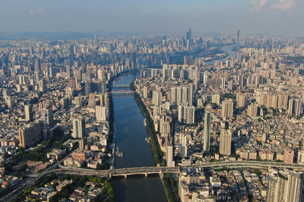 廣州市區(qū)珠江兩岸風(fēng)光(無人機(jī)照片)。