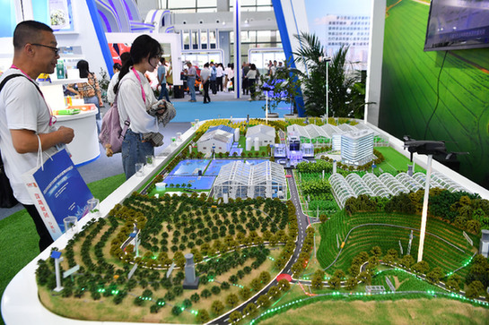 圖為觀眾在楊凌農(nóng)高會參觀智慧育種沙盤。