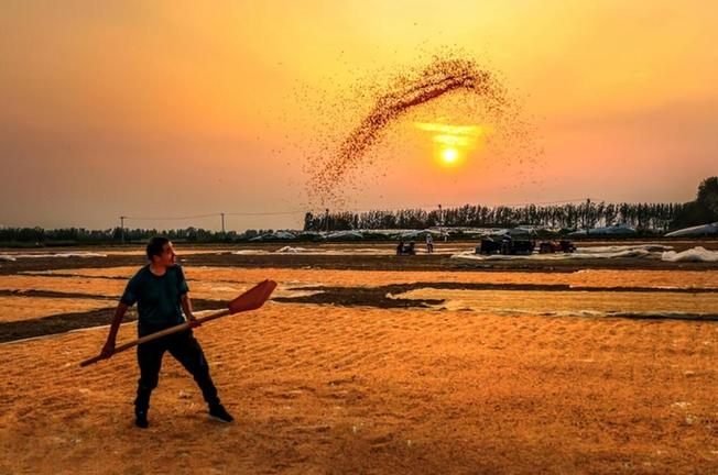 在河南省扶溝縣永珍家庭農(nóng)場,一棟棟鐵絲圈制成的圓柱形糧囤整齊排列、格外耀眼,村民們將收獲后的玉米儲存起來,等待脫粒、晾曬、烘干。