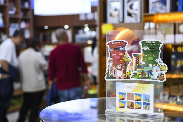如今,解放碑主題郵局內(nèi)琳瑯滿目,除了郵件普服和以“古典文學(xué)”“藝術(shù)瑰寶”“十二生肖”“人文重慶”“壯麗山河”等為主題的各色郵票和明信片銷售外,還有獨(dú)具特色的以郵政文化、重慶元素為內(nèi)涵的文創(chuàng)火鍋底料、文創(chuàng)冰箱貼、文創(chuàng)托特包、文創(chuàng)水杯等眾多文創(chuàng)產(chǎn)品供游客選購。
