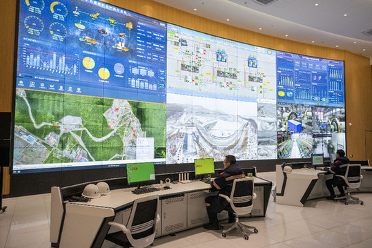 在位于鶴崗市蘿北縣的中國(guó)五礦集團(tuán)(黑龍江)石墨產(chǎn)業(yè)有限公司,工作人員在智慧管控中心內(nèi)作業(yè)。 記者 謝劍飛 攝