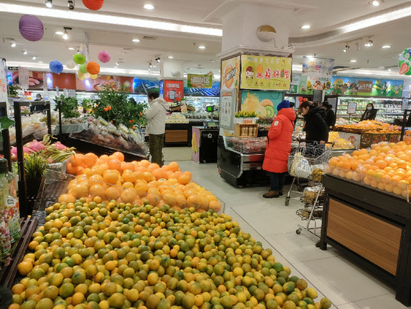 圖為哈爾濱哈爾信超市內(nèi),蔬菜、水果供應(yīng)充足。 新華社記者 朱悅 攝