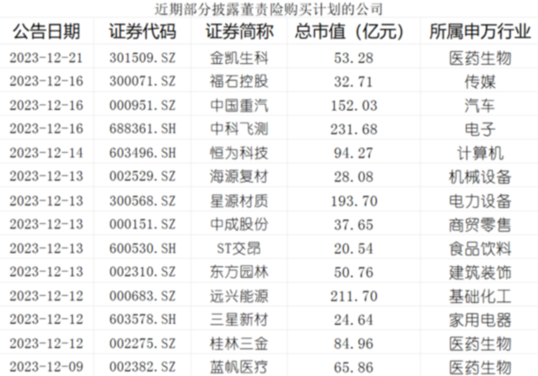 除金凱生物外,12月以來還有福石控股、中國重汽、中科飛測、恒為科技、海源復(fù)材、星源材質(zhì)、芭田股份等在內(nèi)的21家上市公司公告稱擬為全體董監(jiān)高購買責(zé)任險。