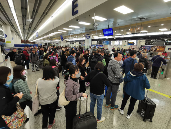 2023年12月29日在深圳福田口岸拍攝的準備通關的旅客。 新華社記者 王豐 攝