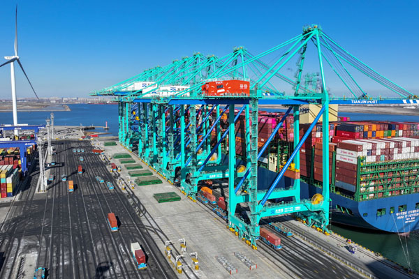 ——叫響津港效率“金招牌”。推進(jìn)智慧平臺(tái)建設(shè),天津港電子商務(wù)網(wǎng)、港口智能管控平臺(tái)、關(guān)港集疏港平臺(tái)等數(shù)字化平臺(tái)穩(wěn)定應(yīng)用,集裝箱主要業(yè)務(wù)單證電子化率達(dá)100%、線上受理率超95%。廣泛推進(jìn)智能閘口建設(shè),集卡平均作業(yè)時(shí)間縮短至16分鐘以內(nèi)。引航拖輪協(xié)同智控中心投入使用,靠離泊效率提升8%。外貿(mào)集裝箱船舶準(zhǔn)班率位居全球前列。2019年以來120次打破各貨類效率紀(jì)錄,“2M北歐一線”、中遠(yuǎn)海運(yùn)美西線、韓新海運(yùn)歐洲線等重點(diǎn)航線效率保持全球第一,“津港效率,全球領(lǐng)先”品牌持續(xù)叫響。