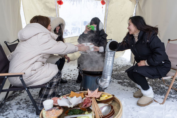 “不僅可以參與冰雪運(yùn)動、賞雪景,還能涮火鍋,燒柴、生火、燙菜……全都自己動手,這樣的體驗(yàn)新鮮又有趣?!蔽逆和┱f。