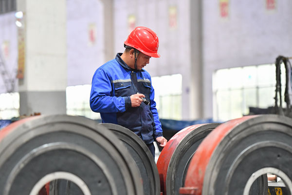 總裝車間里,車間主任尤曉輝拿著手電筒檢查多級(jí)泵中段構(gòu)件的表面平整度。400公斤的中段有1米多高,兩個(gè)密封面之間要嚴(yán)絲合縫,以確保產(chǎn)品的穩(wěn)定性、可靠性?!按汗?jié)后有10多臺(tái)多級(jí)泵需要交付,我們得抓緊時(shí)間完成裝配?!庇葧暂x說。