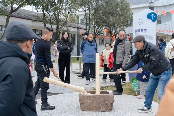 隨著朝陽慢慢升起,一陣歡聲笑語從楠木橋村山頂傳來。在當(dāng)?shù)刈钚麓蛟斓脑贫藚擦盅袑W(xué)基地,不少家長(zhǎng)帶著孩子們學(xué)唱苗歌、體驗(yàn)打糍粑、觀賞舞龍舞獅等苗族春節(jié)習(xí)俗。
