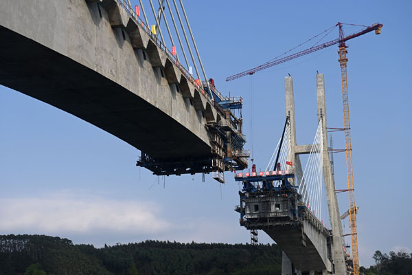 圖為在廣西南寧南深高鐵南玉段六律邕江特大橋建設(shè)現(xiàn)場(chǎng),中鐵十四局集團(tuán)工人在建設(shè)施工中。新華社記者 陸波岸 攝