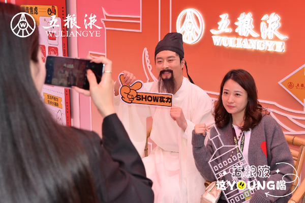 除了設(shè)置吸睛趣味主題、打造創(chuàng)新實景化場景,五糧液還在現(xiàn)場準(zhǔn)備了“和語清風(fēng)”“美景良辰”“中國印象”“國韻芬芳”四款特調(diào)美酒,邀請“蘇東坡”與市民游客現(xiàn)場進(jìn)行飛花令,答對的市民游客可免費(fèi)品嘗特調(diào)酒一杯,領(lǐng)略中國古代詩詞與中國白酒文化的雙重魅力。