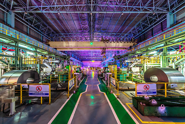 中國寶武寶鋼股份寶山基地冷軋廠C008智能車間(“黑燈工廠”)內(nèi)景(2022年2月8日攝)?!∮浾摺》絾础z