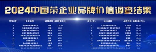 5月10日,“2024中國(guó)茶品牌建設(shè)論壇”在上海舉辦,中國(guó)茶葉流通協(xié)會(huì)、中國(guó)經(jīng)濟(jì)信息社發(fā)布了中國(guó)茶品牌價(jià)值調(diào)查結(jié)果,中茶公司以128.09億再獲“2024中國(guó)茶品牌Top50”榜首,成為唯一品牌價(jià)值過(guò)百億企業(yè)。