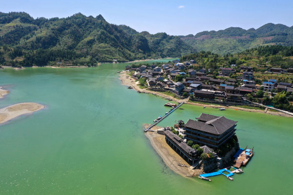 圖為重慶市酉陽縣酉水河鎮(zhèn)河灣村景色(無人機照片)。新華社記者 唐奕 攝