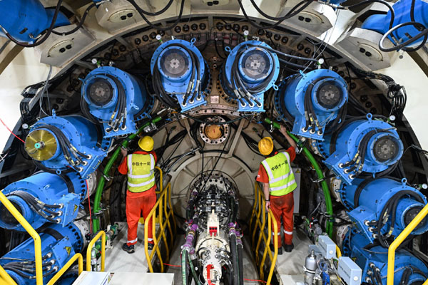 近日,由中鐵十一局承建的深江鐵路深莞隧道西段“鯤鵬號(hào)”盾構(gòu)機(jī)順利始發(fā)。該段是13米級(jí)大直徑單洞雙線隧道,線路埋深跨度在9至62米。深江鐵路是我國(guó)“八縱八橫”高鐵網(wǎng)沿海通道的重要組成部分,線路起自深圳西麗站,正線全長(zhǎng)116公里,跨越珠江口,串聯(lián)深圳、東莞、廣州、中山和江門等5座城市。該工程建成后,深圳與江門可實(shí)現(xiàn)1小時(shí)內(nèi)通達(dá),深圳與廣州南沙自貿(mào)片區(qū)可實(shí)現(xiàn)半小時(shí)高鐵互聯(lián)互通。圖為施工人員在檢查“鯤鵬號(hào)”盾構(gòu)機(jī)刀頭組件運(yùn)行狀況。