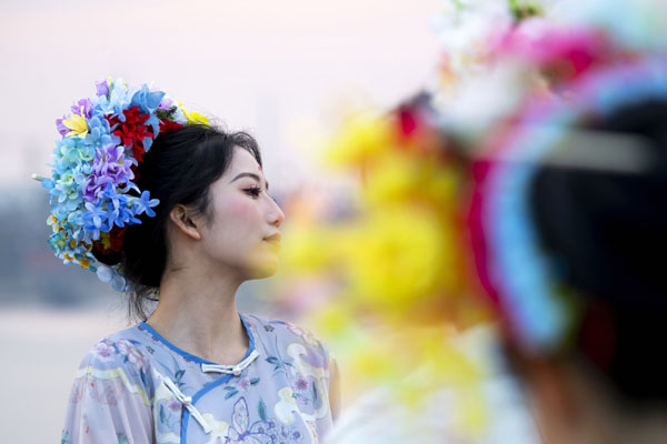 “源于泉州蟳埔村的簪花圍近來最受大家追捧。有人說骨笄頭飾是古代‘骨針安發(fā)’遺風,也有人說蟳埔村民是阿拉伯人后裔,簪花圍源于中亞婦女戴花的習俗。”旅拍店負責人龍路存是蘇文竹的老鄉(xiāng),在泉州考察一個禮拜后,決定在福州落腳。他說,市民、游客頭戴簪花圍,身穿民族服飾,既感受傳統(tǒng)文化的魅力,也表達對幸福生活的熱愛。