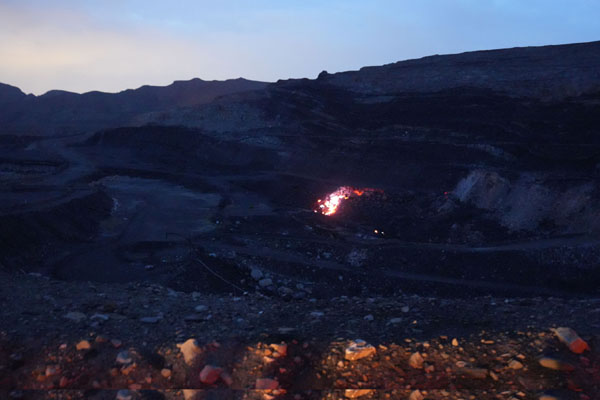 近日,記者來(lái)到位于賀蘭山腹地的汝箕溝礦區(qū)中槽、紅梁西火區(qū),站在數(shù)百米外,刺鼻的氣味撲面而來(lái),大約數(shù)十平方米的區(qū)域內(nèi),紅色火焰在夜間清晰可見(jiàn)。第二天一早,記者在中槽火區(qū)附近看到,厚幾十米、長(zhǎng)達(dá)幾千米的煤層自燃后呈灰白色,煤層燒空后還引發(fā)了山體滑坡。