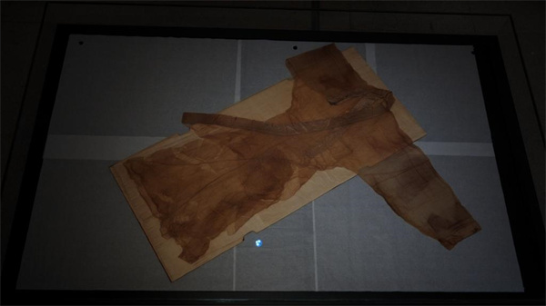 ??“素紗單衣有兩件,一件是直裾,一件是曲裾,都是右衽。其中,直裾的是49克,衣長(zhǎng)128厘米;曲裾的是48克,衣長(zhǎng)160厘米。曲裾的素紗單衣在工藝上相對(duì)更高超,因?yàn)樗L(zhǎng)、更寬,卻還輕1克?!痹S寧寧說(shuō),“直裾素紗單衣在館內(nèi)馬王堆漢墓基本陳列中常年展出,此次展覽中,我們特意安排了這件從未對(duì)外展出過(guò)的曲裾素紗單衣真品?!?/p>