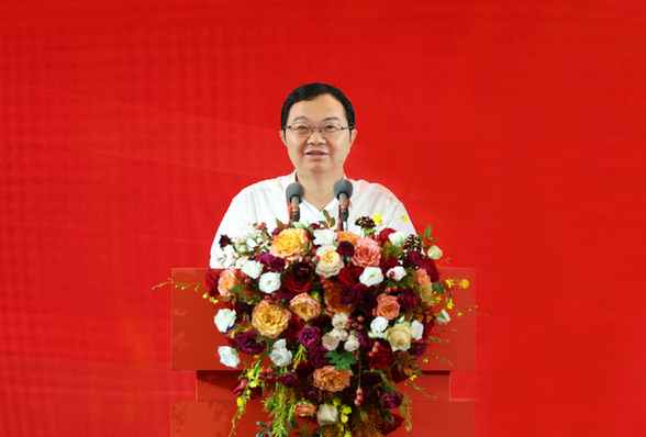 圖為五糧液集團(tuán)(股份)公司黨委書(shū)記、董事長(zhǎng)曾從欽致辭