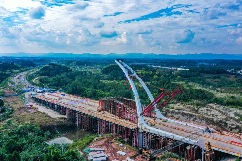 圖為中鐵重工參建的成都空港新城北一線跨絳溪河大橋鋼橋塔豎轉成功。該項目是成都首座千噸級橋塔豎轉成功的橋梁,實施過程創(chuàng)下多個全國第一。資料照片