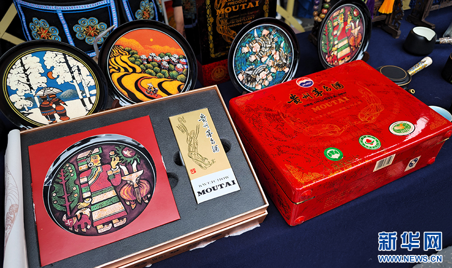 10月11日,茅臺酒節(jié)現(xiàn)場展示的各類貴州非遺工藝品。